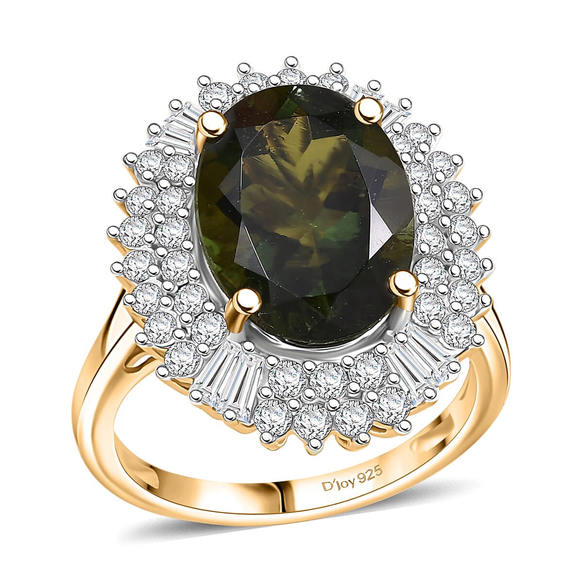 D'Joy Bohemian Moldavite and Moissanite 6.00 ctw Blooming Flower Ring in 18K Vermeil Yellow Gold Over Sterling Silver (Size 9.0)