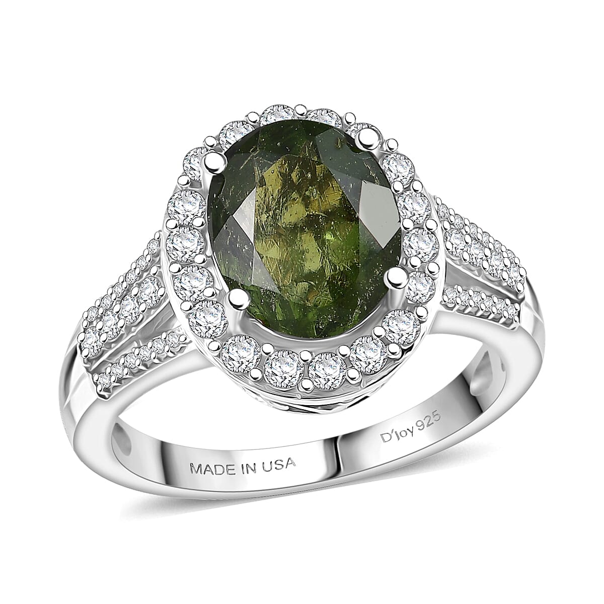 D'Joy Bohemian Moldavite and White Zircon 3.00 ctw Ring in Rhodium Over Sterling Silver (Size 10.0)