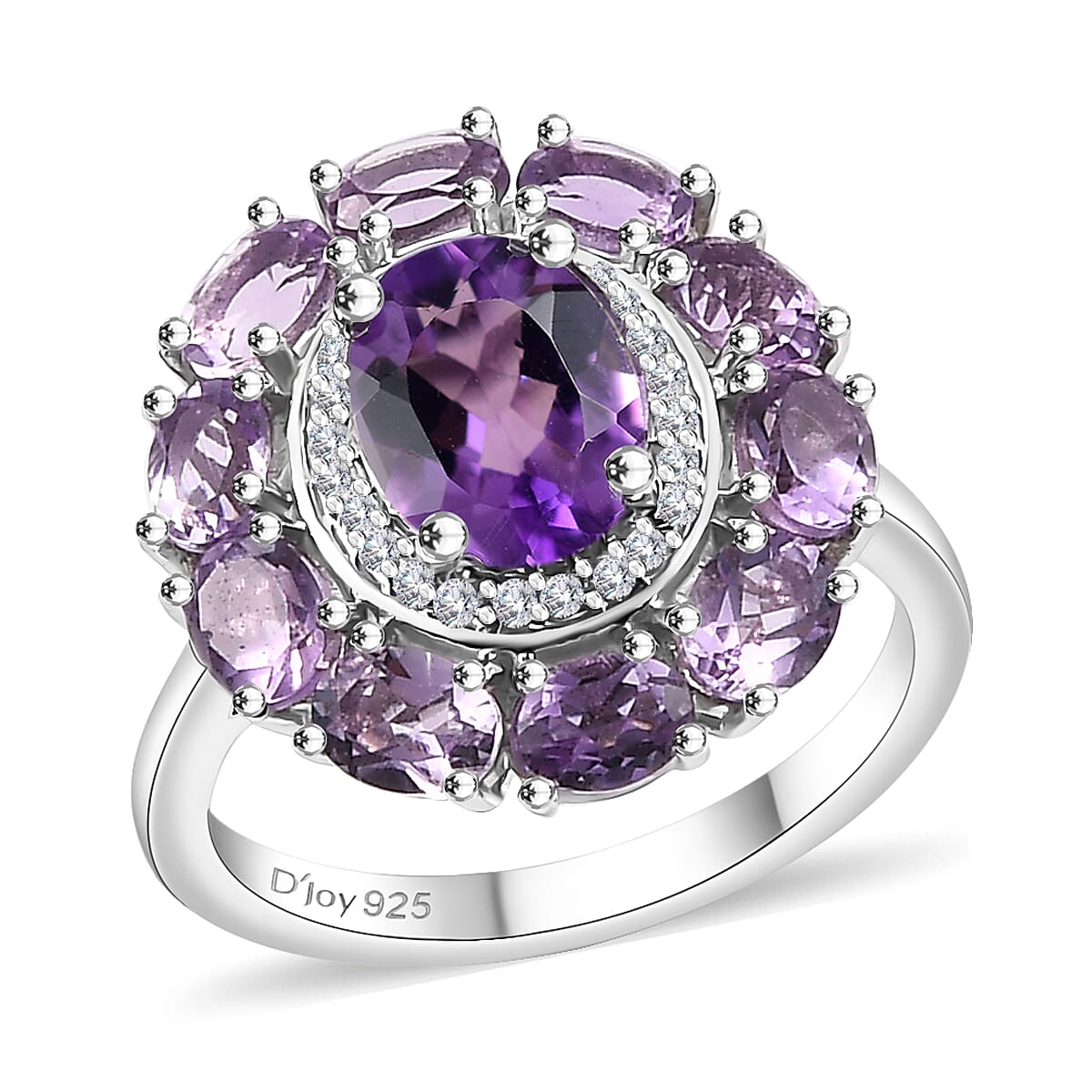 D'Joy Bolivian Amethyst and Multi Gemstone 2.80 ctw Halo Ring in Rhodium Over Sterling Silver (Size 6.0)