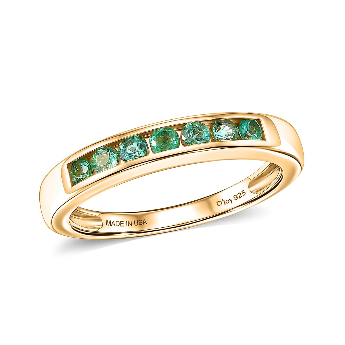 D'Joy Boyaca Colombian Emerald 0.50 ctw Royal Glow Band Ring in 18K Vermeil Yellow Gold Over Sterling Silver (Size 6.0)