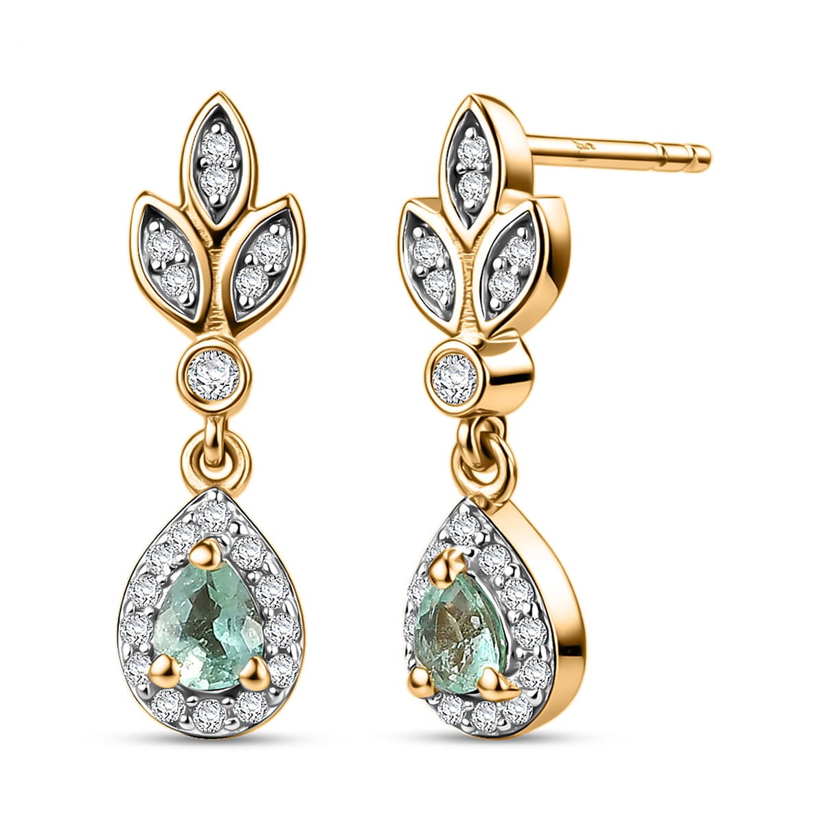 D'Joy Boyaca Colombian Emerald and Moissanite 0.50 ctw Earrings in 18K Vermeil Yellow Gold Over Sterling Silver