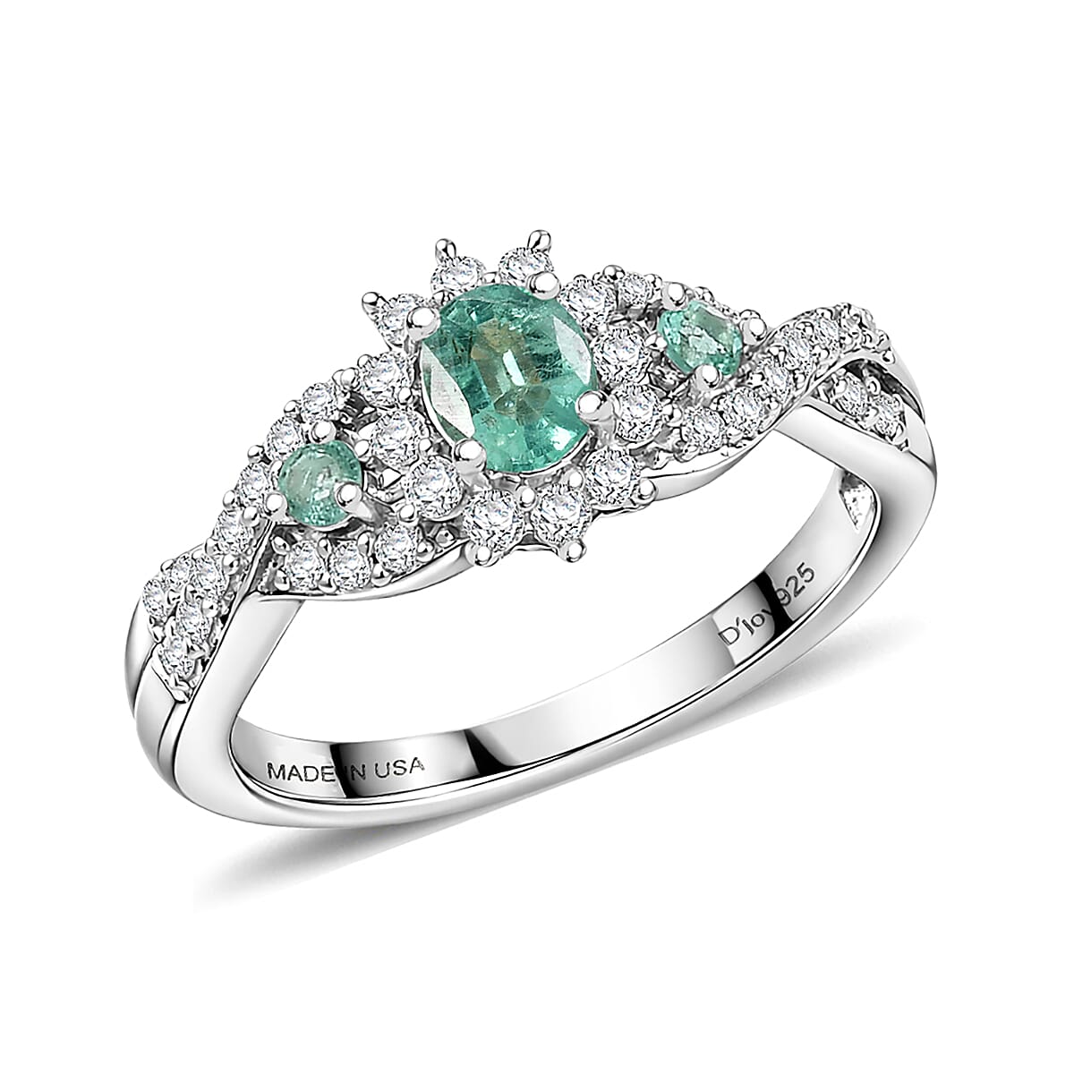 D'Joy Boyaca Colombian Emerald and Moissanite 0.70 ctw Bloom Brilliance Ring in Rhodium Over Sterling Silver (Size 6.0) (Del. In 8-10 Days)