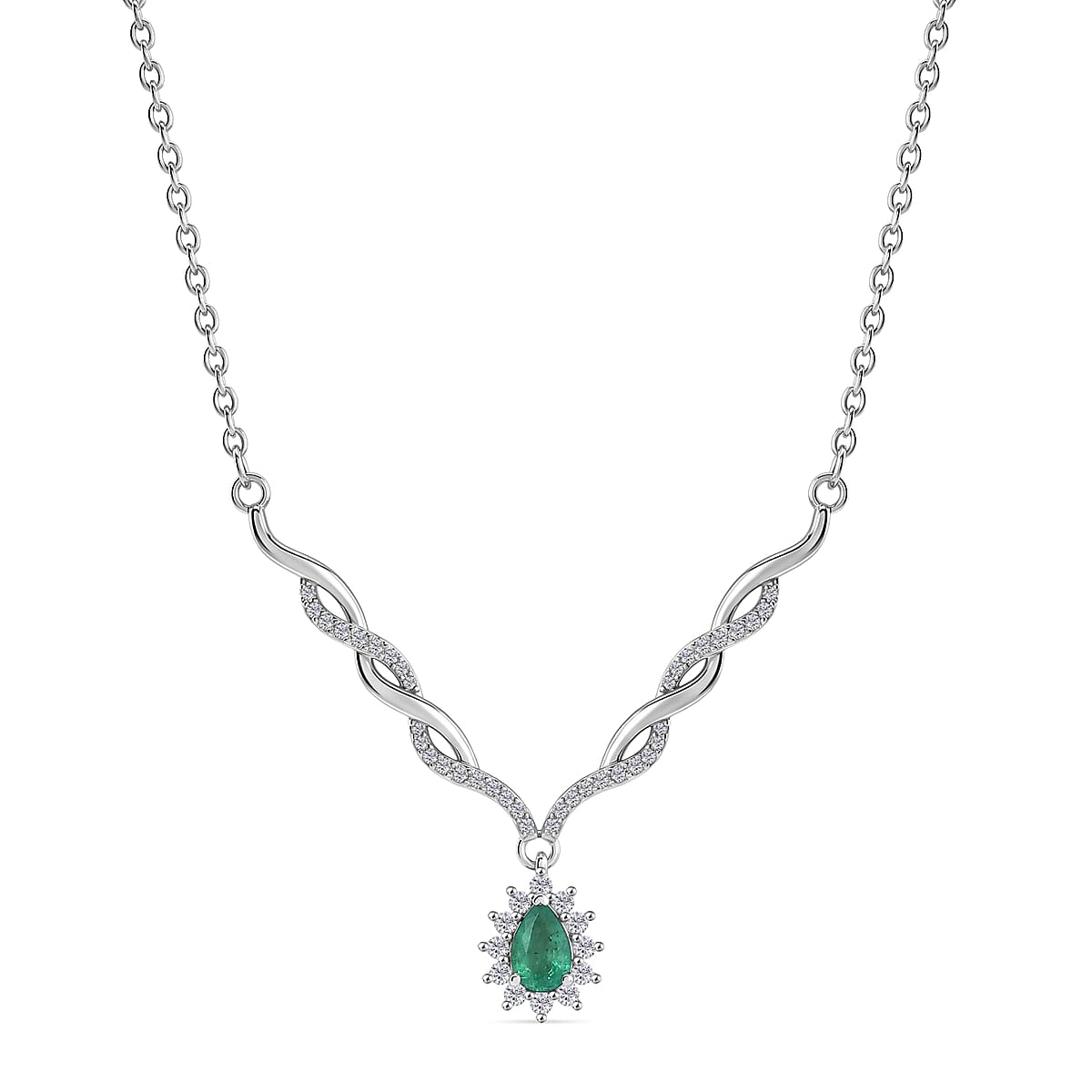 D'Joy Boyaca Colombian Emerald and Moissanite 0.80 ctw Flame Drop Necklace in Rhodium Over Sterling Silver 18-20 Inches