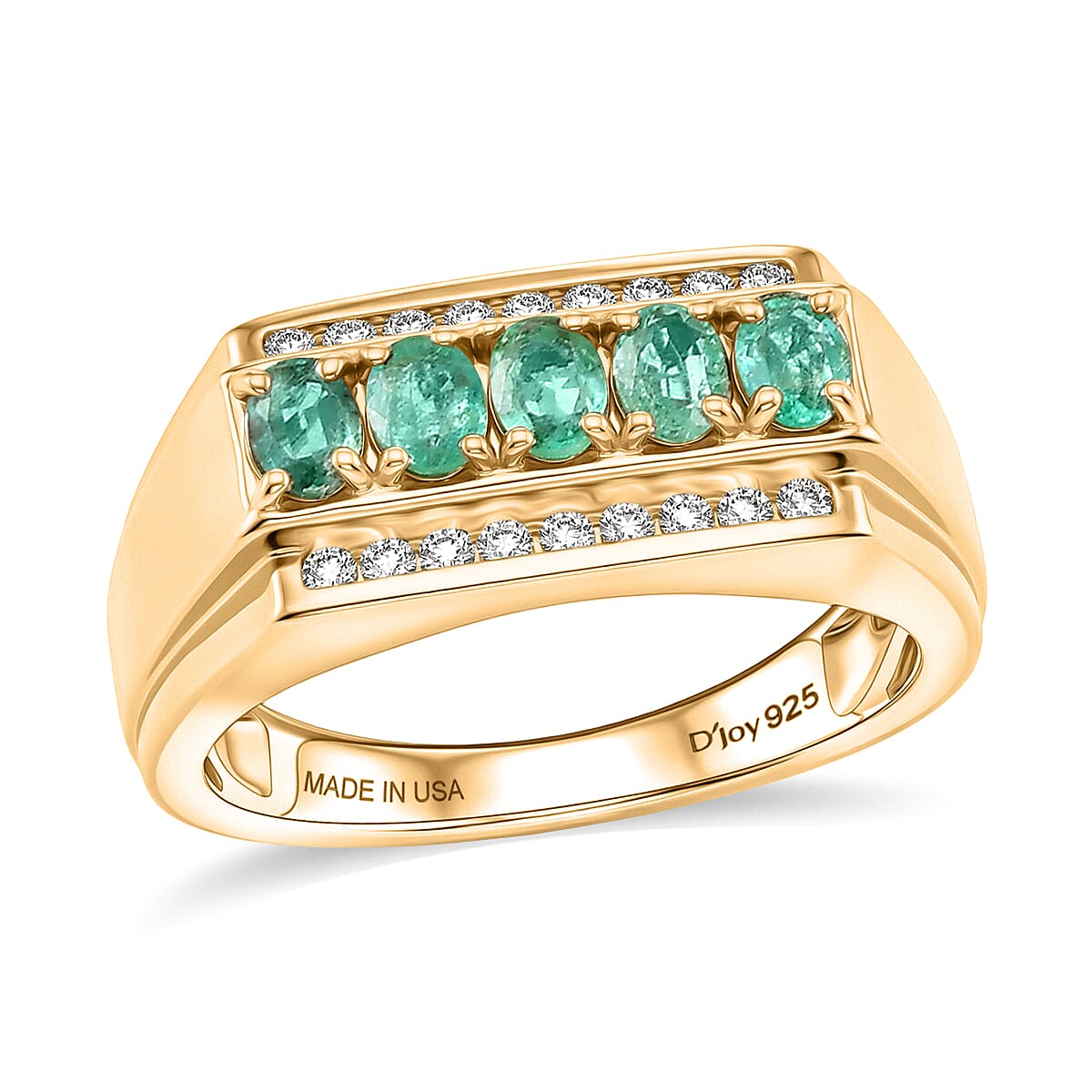 D'Joy Boyaca Colombian Emerald and Moissanite 1.00 ctw Men's Ring in 18K Vermeil Yellow Gold Over Sterling Silver (Size 10.0)