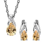 D'Joy Brazilian Citrine Earrings and Pendant Necklace Jewelry Set, Sterling Silver and Stainless Steel Jewelry Set, Set of Citrine Earrings and Citrine Pendant Necklace 1.80 ctw