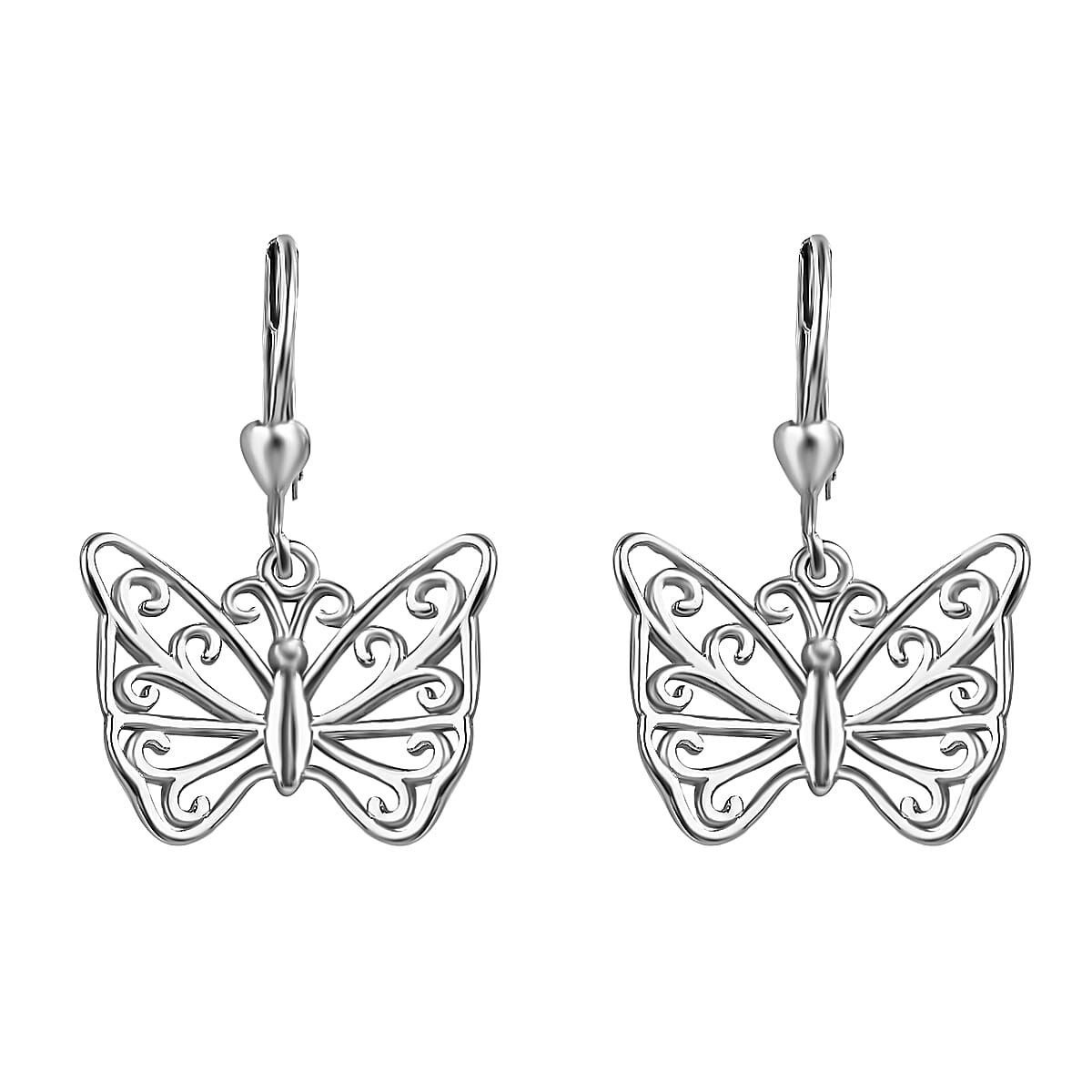 D'Joy Butterfly Earrings in Platinum Plated Sterling Silver, Dangle Silver Earrings, Dangle Drop Earrings