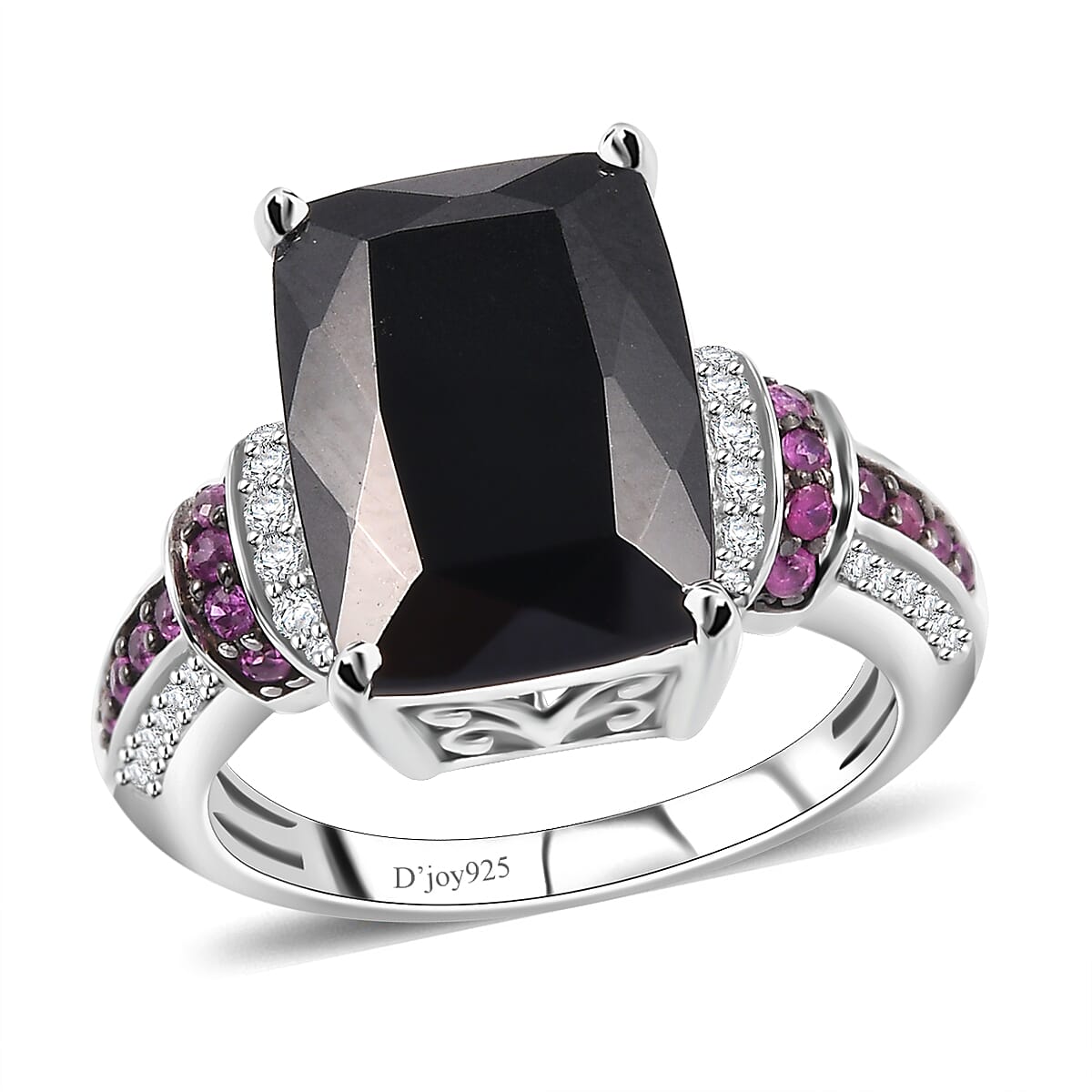 D'Joy California Black Jade and Multi Gemstone 7.85 ctw Elegant Ring in Rhodium Over Sterling Silver (Size 9.0)