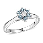 D'Joy Cambodian Blue Zircon and White Zircon 0.60 ctw Ring in Rhodium Over Sterling Silver (Size 6.0)