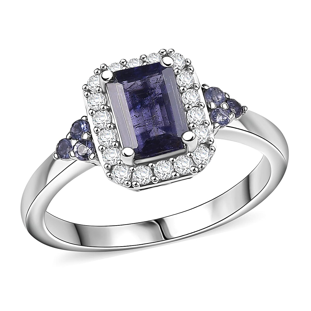 D'Joy Catalina Iolite and White Zircon 1.30 ctw Nebula Glow Ring in Rhodium Over Sterling Silver (Size 5.0)