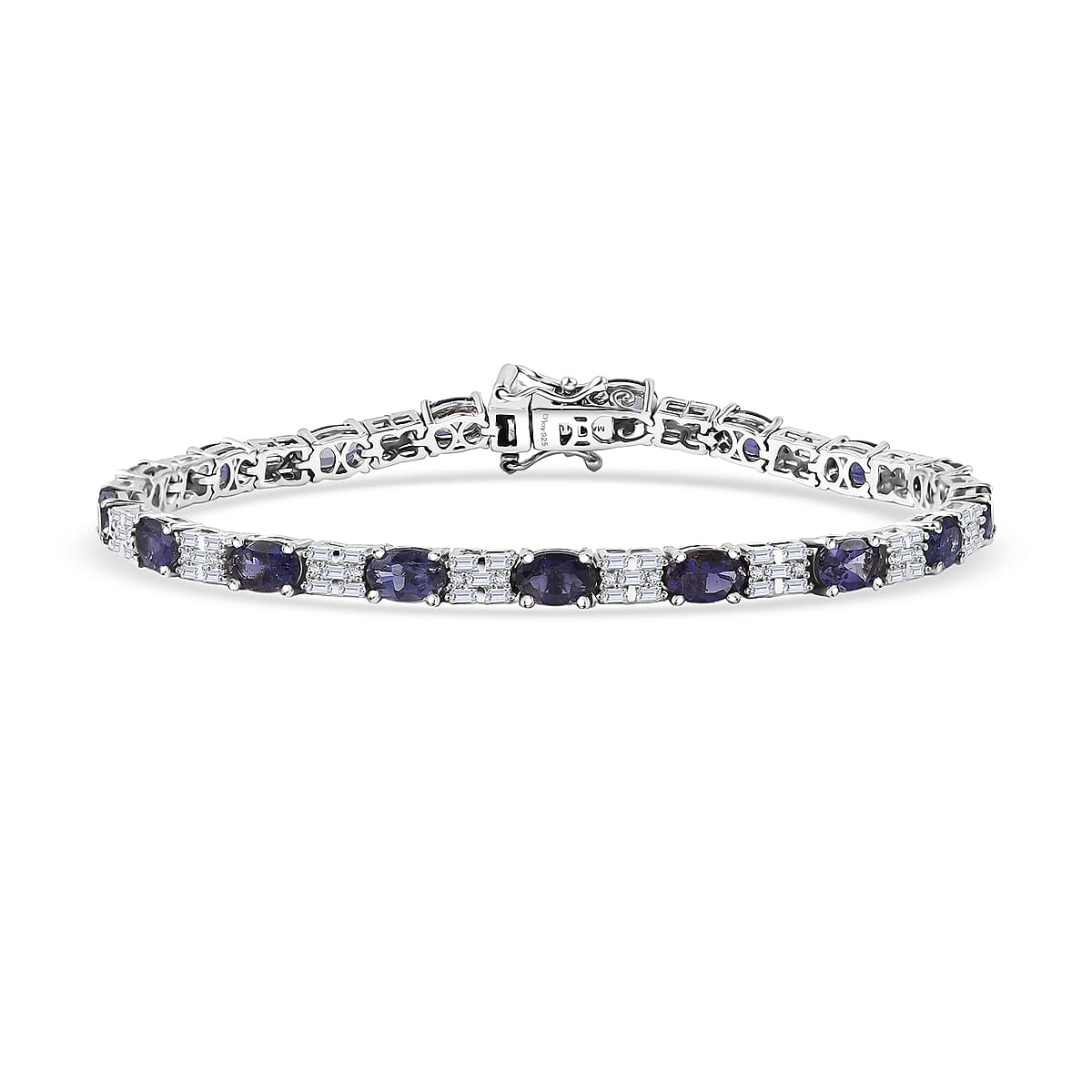 D'Joy Catalina Iolite, Moissanite Bracelet in Rhodium Over Sterling Silver 7.15 ctw (6.50 Inches)