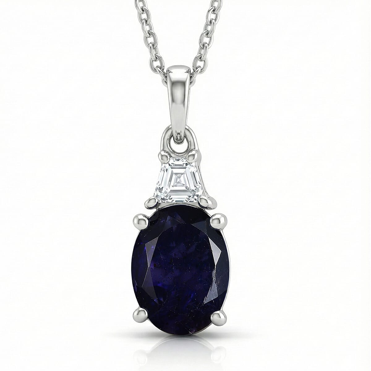 D'Joy Catalina Iolite, Moissanite Pendant Necklace in Rhodium Over Sterling Silver 1.65 ctw (20 Inches)