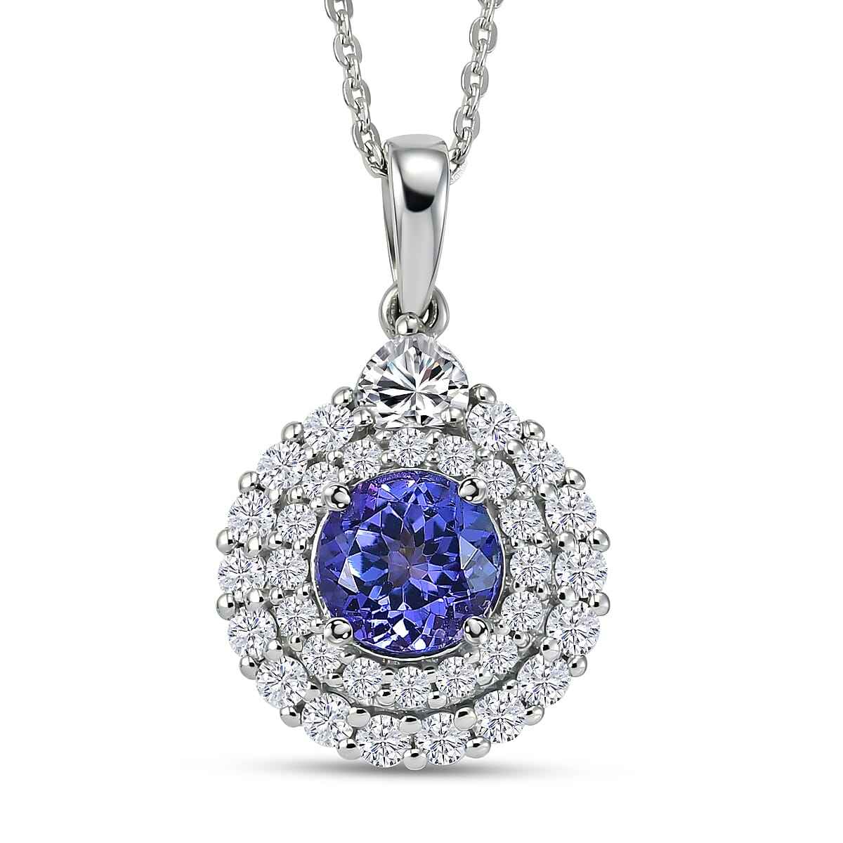 D'Joy Certified & Appraised Tanzanite and Moissanite 2.10 ctw Pendant Necklace (20 Inches) in Rhodium Over Sterling Silver
