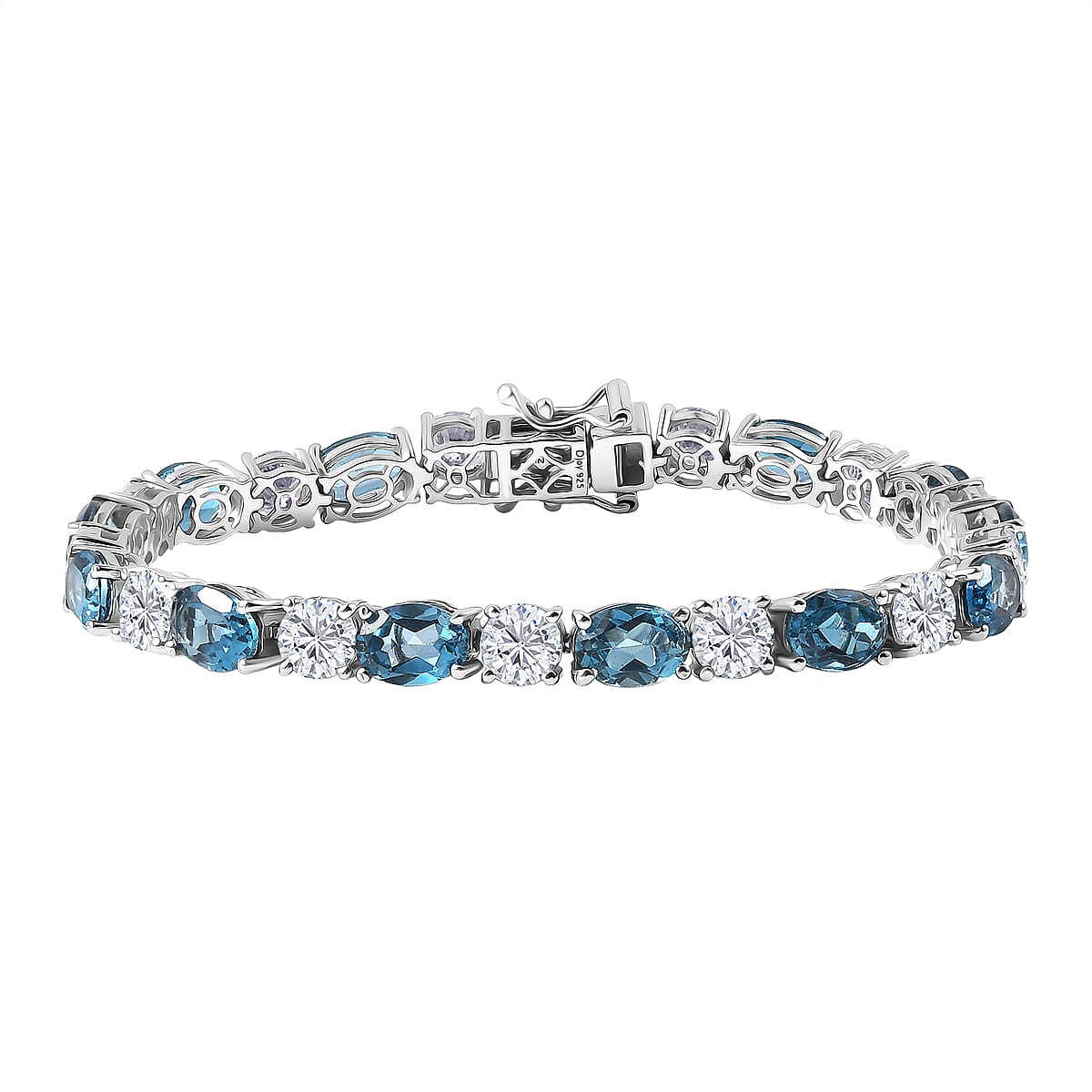 D'Joy Certified London Blue Topaz and Moissanite 17.10 ctw Bracelet in Rhodium Over Sterling Silver (6.50 In)