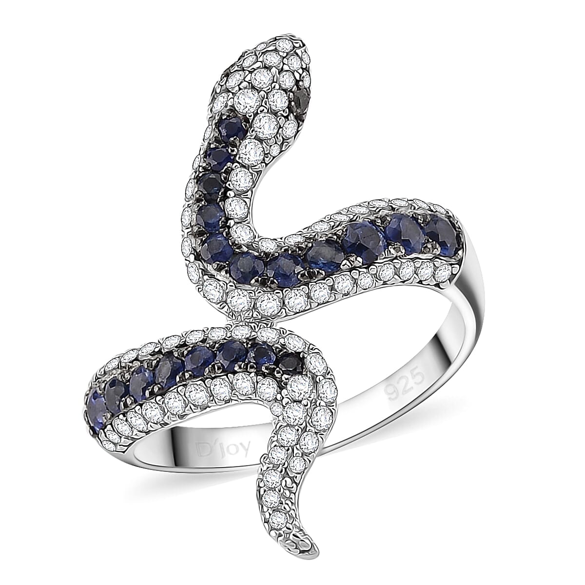 D'Joy Ceylon Blue Sapphire and Multi Gemstone 1.85 ctw Serpent Ring in Rhodium Over Sterling Silver (Size 6.0)