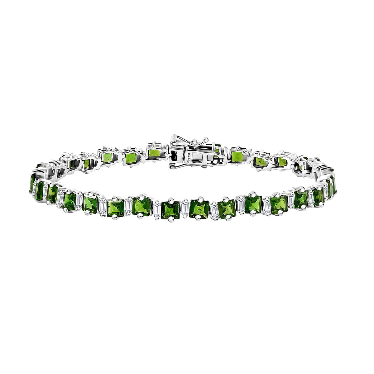 D'Joy Chrome Diopside and Moissanite 13.15 ctw Sea Waves Bracelet in Rhodium Over Sterling Silver (8.00 In)