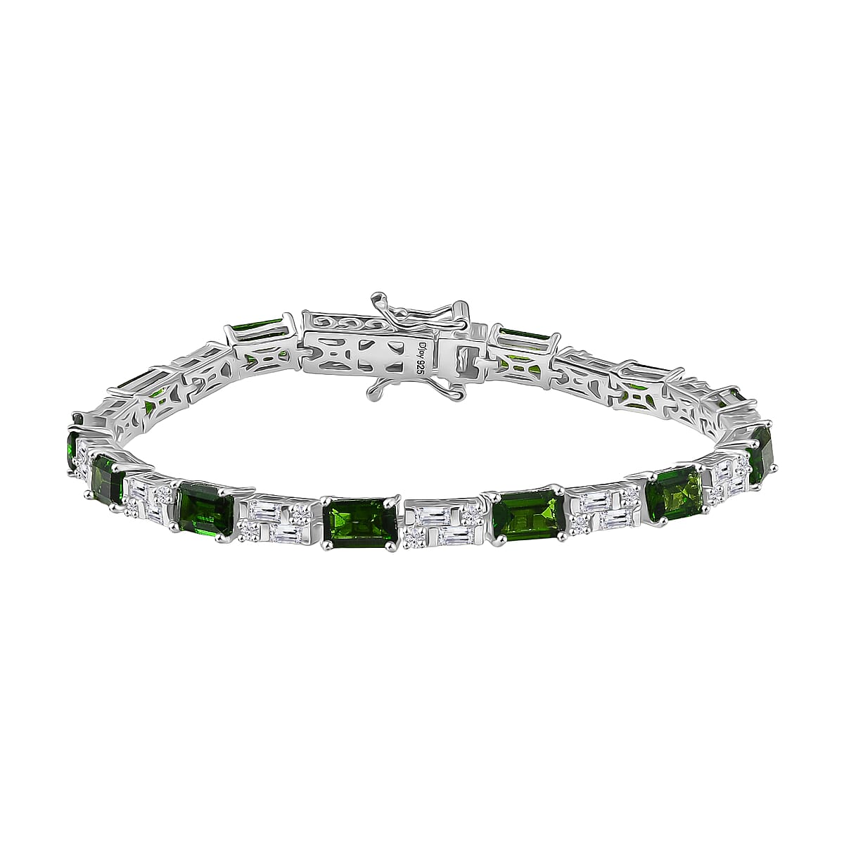 D'Joy Chrome Diopside and Moissanite 8.50 ctw Bracelet in Rhodium Over Sterling Silver (6.50 In)