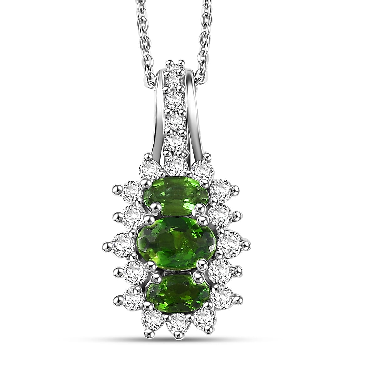 D'Joy Chrome Diopside and White Zircon 1.75 ctw Blooming Flower Pendant Necklace in Rhodium Over Sterling Silver 20 Inches