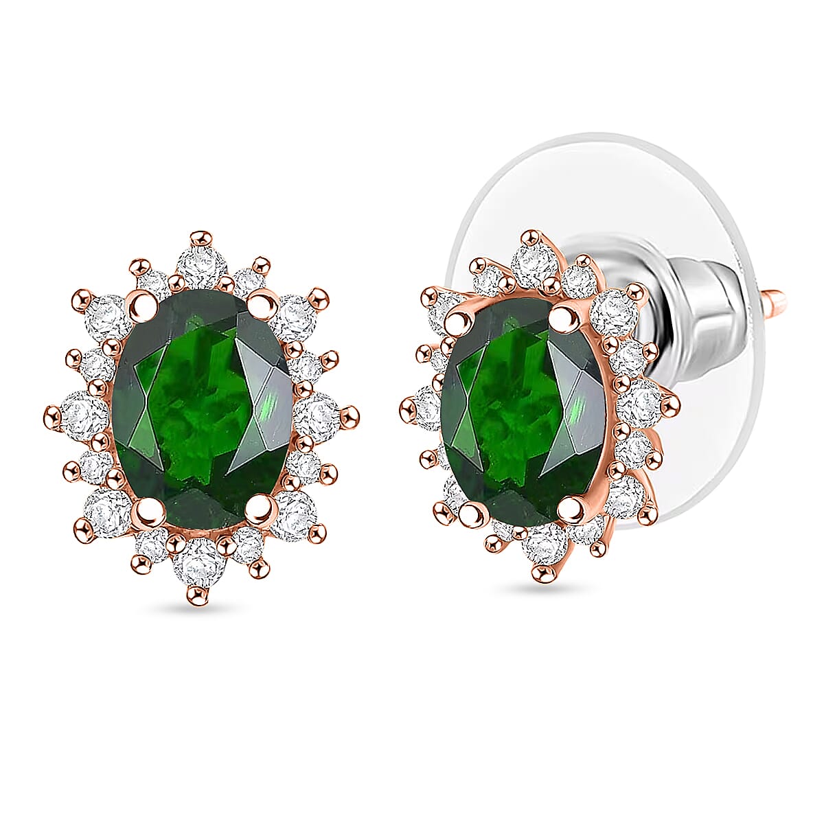 D'Joy Chrome Diopside and White Zircon 2.62 ctw Earrings in 18K Vermeil RG Over Sterling Silver