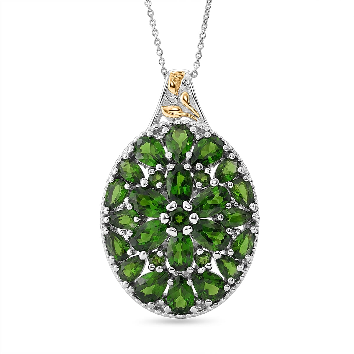 D'Joy Chrome Diopside and White Zircon 8.65 ctw Pendant Necklace in 18K Vermeil YG and Rhodium Over Sterling Silver 20 inches