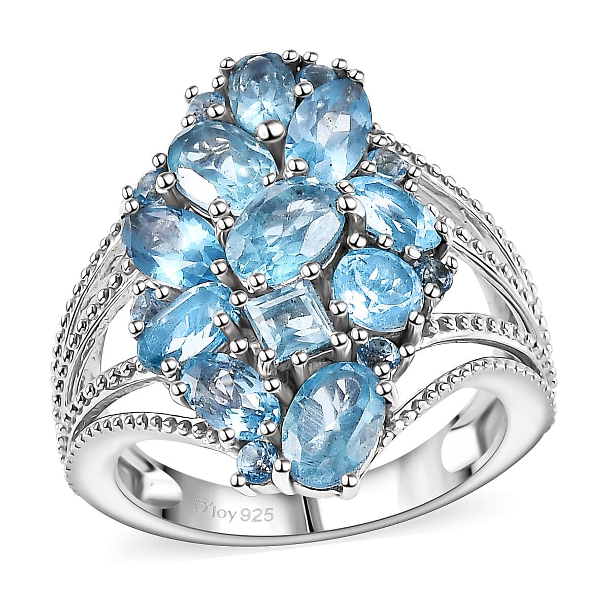 This stunning multi-blue topaz ring captivates with its vibrant cluster of gemstones, beautifully set in 925 sterling silver. The elegant design makes this cluster ring for women a perfect choice for any special occasion.
