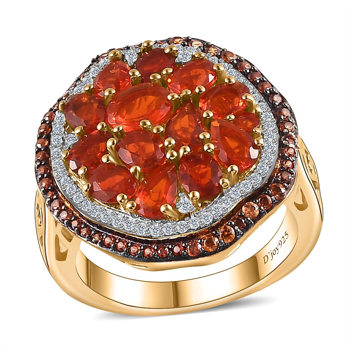 Are you ready to ignite your style with the mesmerizing allure of the crimson fire opal, brown, and white zircon ring? Prepare to dazzle onlookers with a captivating blend of rich hues and exquisite craftsmanship. Crafted in vermeil yellow gold over sterling silver, this fire opal statement ring for women exudes luxury and sophistication, promising to elevate your ensemble to new heights.