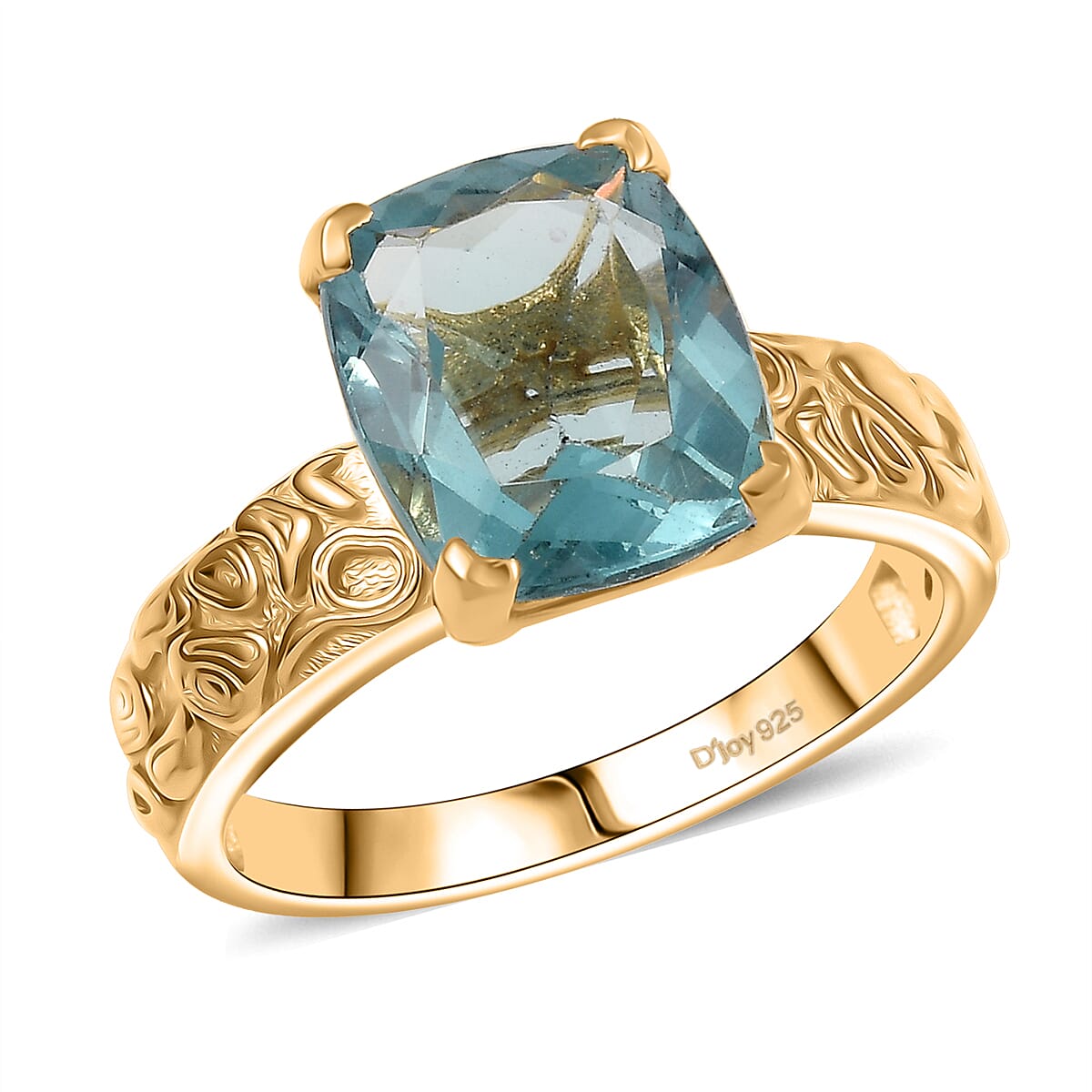 D'Joy Dean Teal Fluorite (IR) 4.85 ctw Swirling Water Ring in 18K Vermeil Yellow Gold Over Sterling Silver (Size 9.0) (Del. in 10-12 Days)