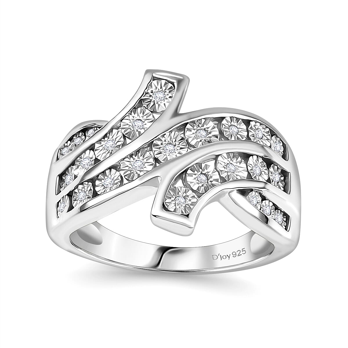 D'Joy Diamond 0.10 ctw Bypass Ring in Rhodium Over Sterling Silver (Size 10.0)