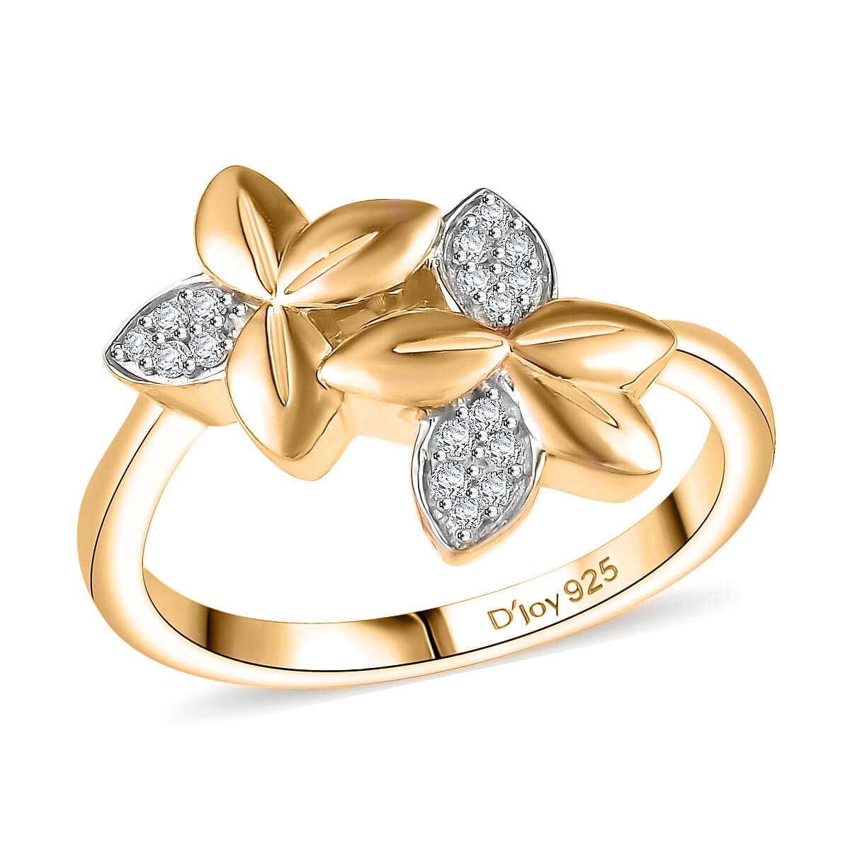 D'Joy Diamond 0.10 ctw Floral Ring in 18K Vermeil Yellow Gold Over Sterling Silver (Size 6.0)