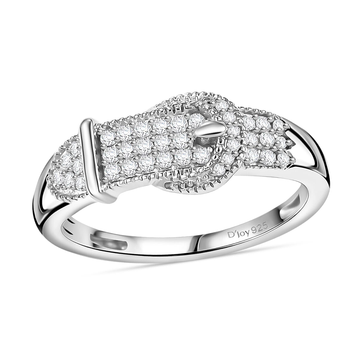 D'Joy Diamond 0.25 ctw Buckle Ring in Rhodium Over Sterling Silver (Size 6.0)