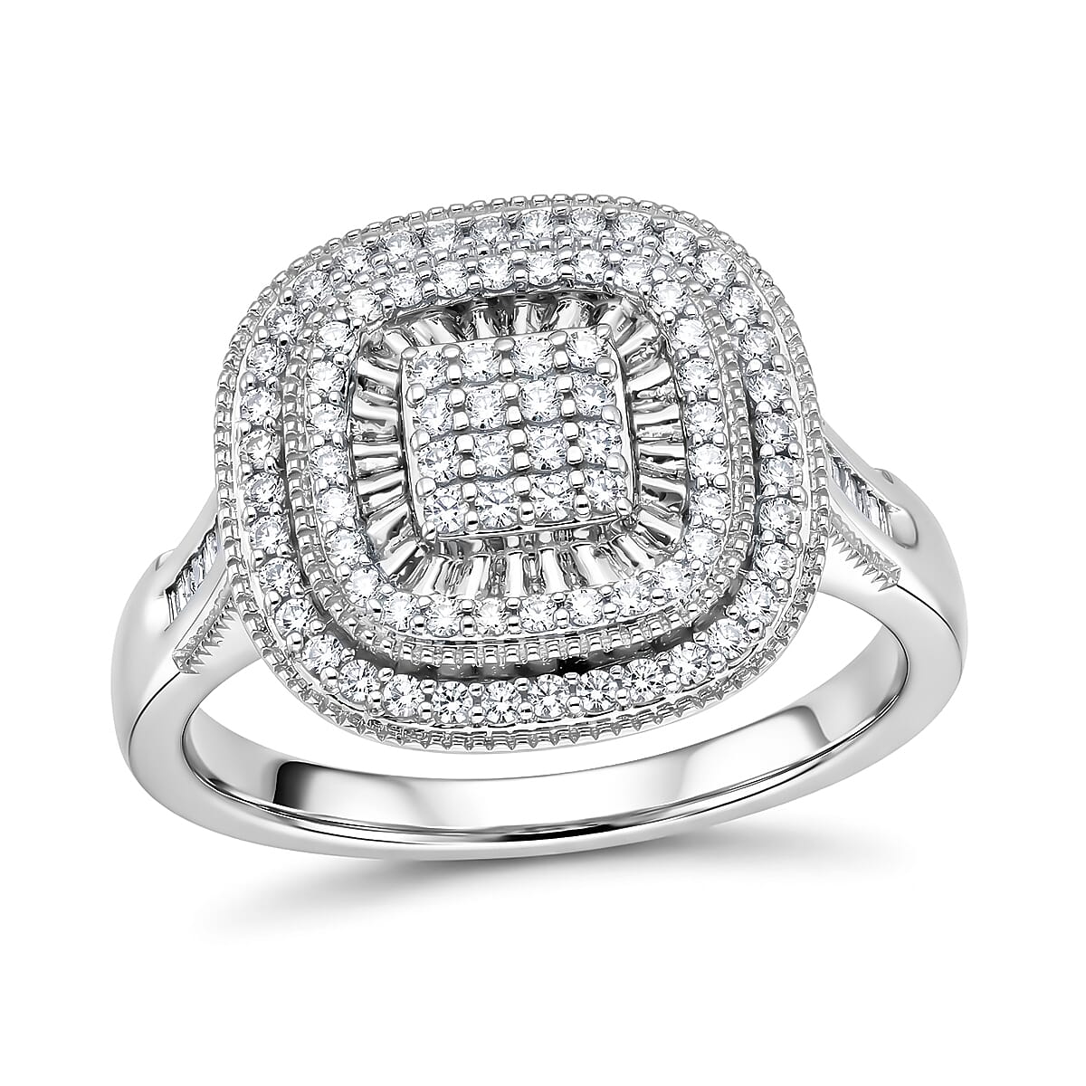 D'Joy Diamond 0.50 ctw Double Halo Ring in Rhodium Over Sterling Silver (Size 7.0)