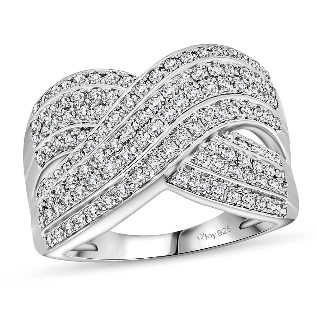 D’Joy Diamond 0.75 ctw Crossover Bridge Ring in Rhodium Over Sterling Silver (Size 10.0)