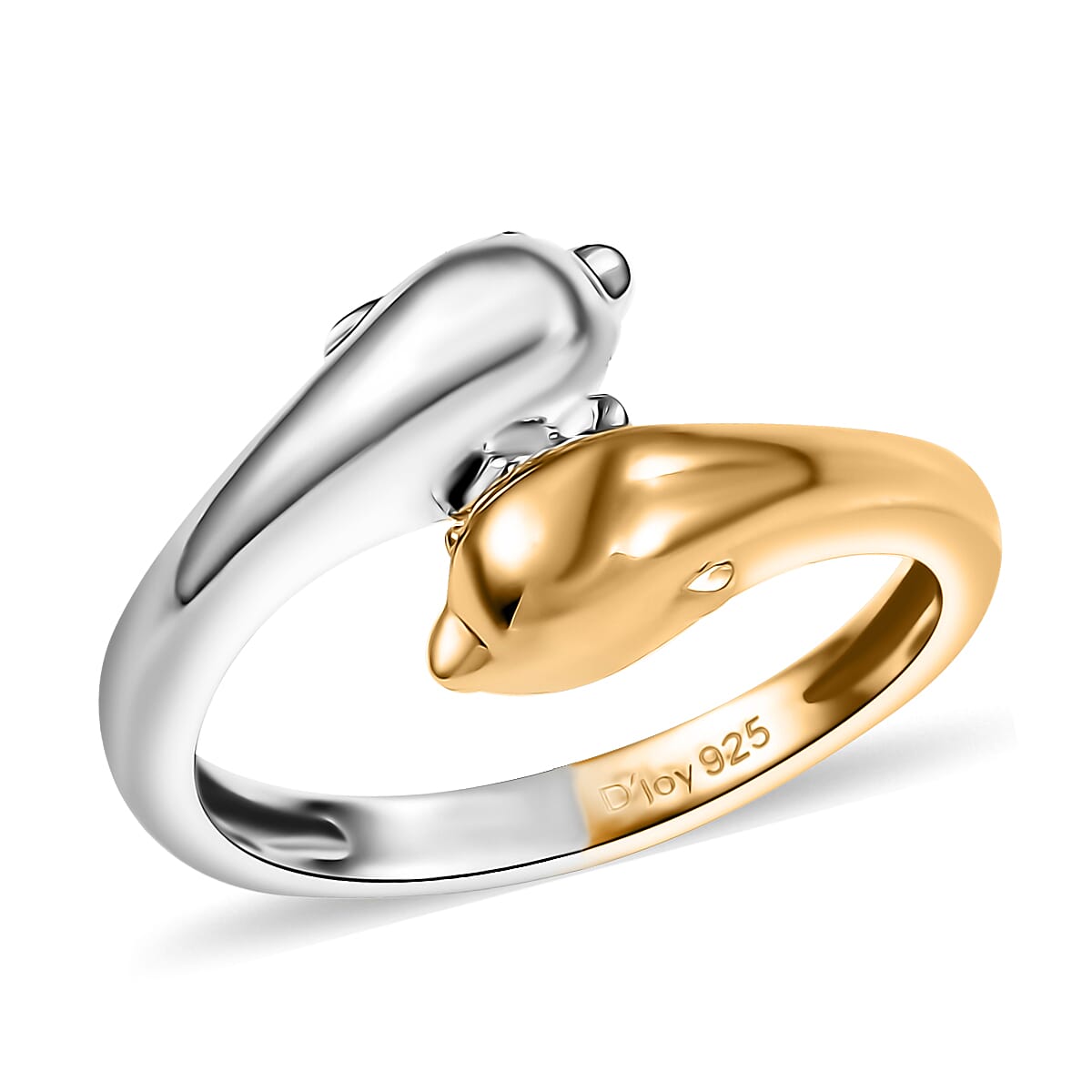 D'Joy Dolphin Twin Spirits Ring in 18K Vermeil YG and Rhodium Over Sterling Silver (Size 9.0) 4.10 Grams