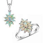 D'Joy Ethiopian Welo Opal 1.40 ctw Ring (Size 5.0), and Pendant Necklace 20 Inches in Rhodium Over Sterling Silver