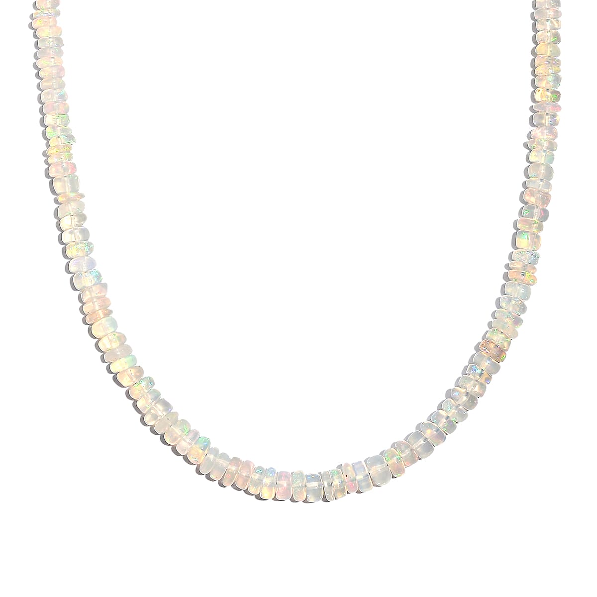 D'Joy Ethiopian Welo Opal 35.00 ctw Beaded Necklace in Rhodium Over Sterling Silver 18-20 Inches (Del. in 8-10 Days)