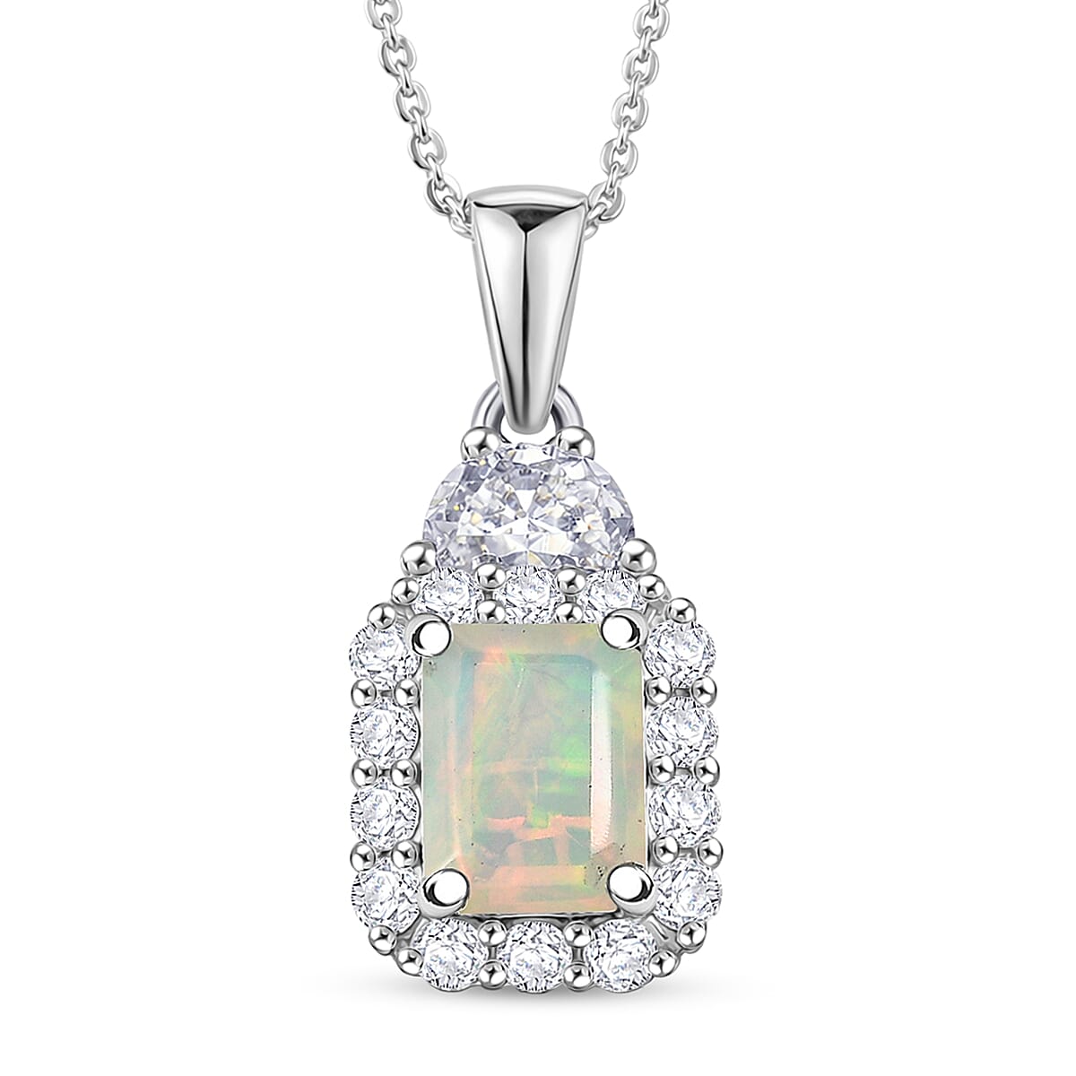 D'Joy Ethiopian Welo Opal and Moissanite 1.85 ctw Pendant Necklace in Rhodium Over Sterling Silver 20 Inches