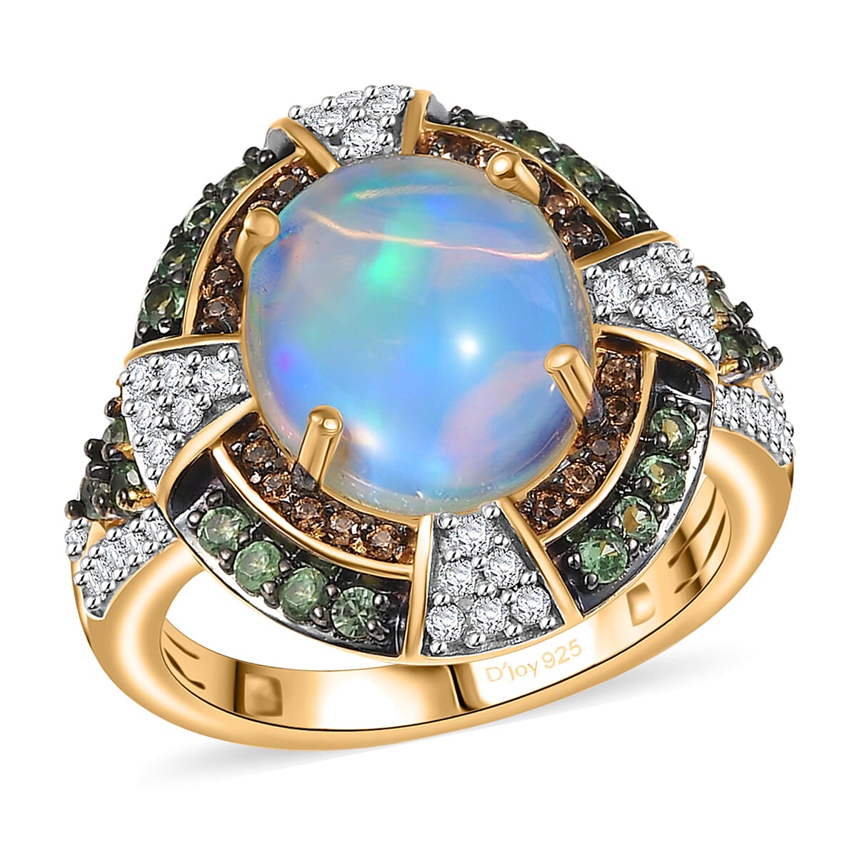 D'Joy Ethiopian Welo Opal and Multi Gemstone 5.00 ctw Greek Cross Ring in 18K Vermeil Yellow Gold Over Sterling Silver (Size 7.0)