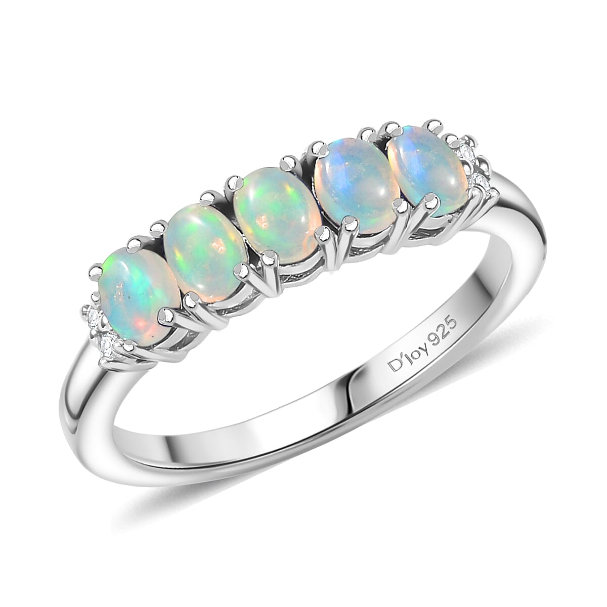 D'Joy Ethiopian Welo Opal and White Zircon 0.65 ctw Ring in Rhodium Over Sterling Silver (Size 7.0)