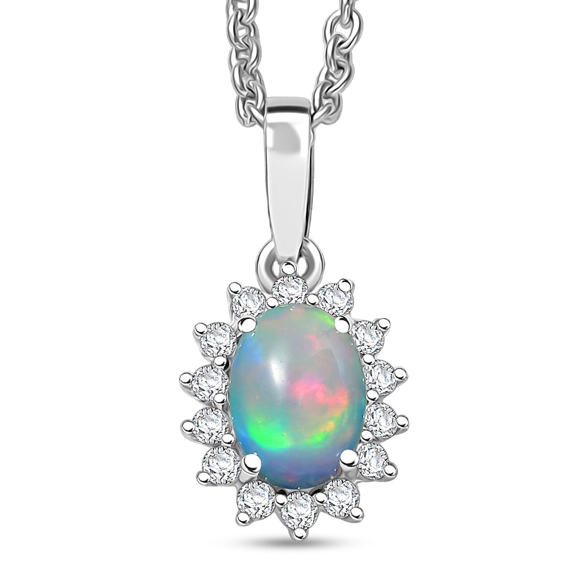 D'Joy Ethiopian Welo Opal and White Zircon 0.85 ctw Pendant Necklace in Rhodium Over Sterling Silver 20 Inches