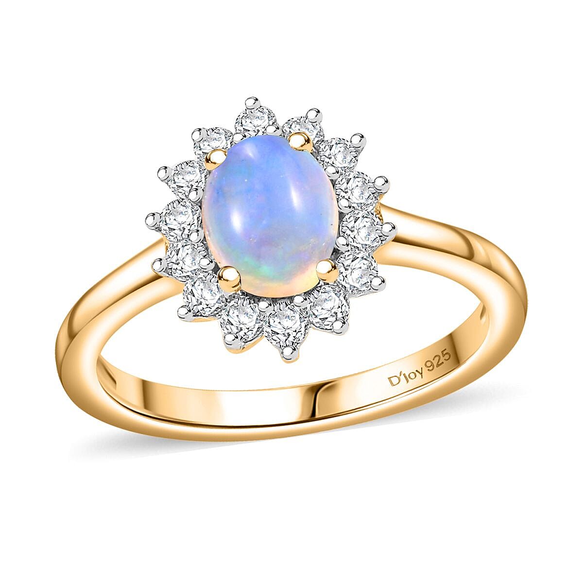 D'Joy Ethiopian Welo Opal and White Zircon 1.10 ctw Ring in 18K Vermeil Yellow Gold Over Sterling Silver (Size 10.0)