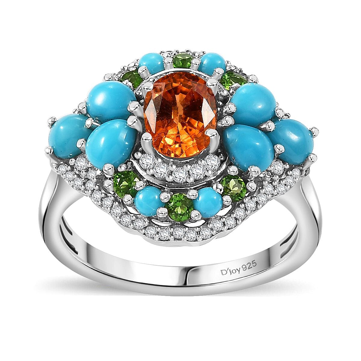This Fanta garnet ring in sterling silver showcases a striking cluster arrangement of vibrant gems. The Fanta garnet, celebrated for its intense hue, is accented with multi-gemstones, all securely set in prong settings. Crafted with sterling silver and a premium finish, this piece exemplifies fine craftsmanship and quality design.