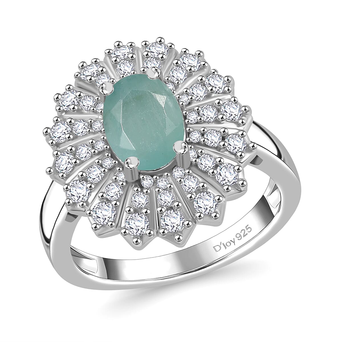 D'Joy Grandidierite and White Zircon 2.35 ctw Sunrays Ring in Rhodium Over Sterling Silver (Size 9.0)