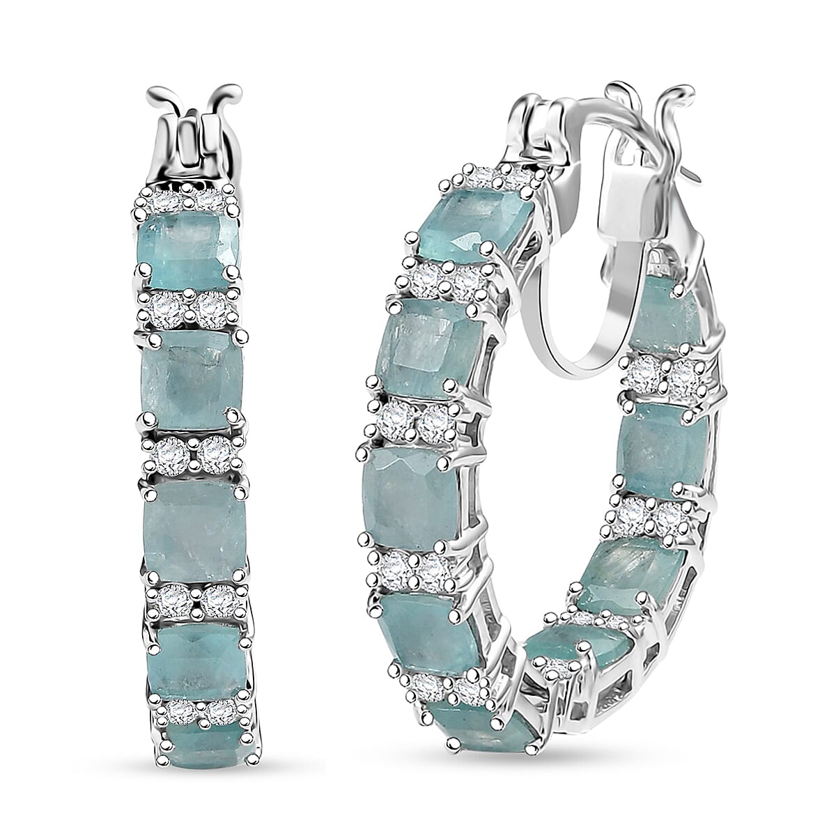 D'Joy Grandidierite and White Zircon 6.00 ctw Royal Radiance Hoop Earrings in Rhodium Over Sterling Silver