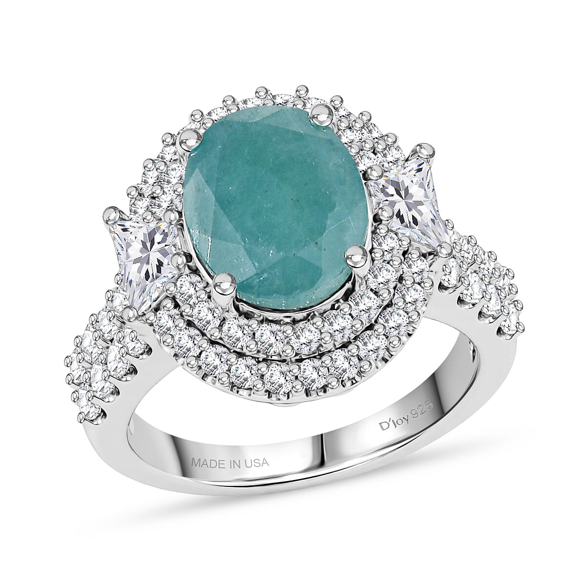 D'Joy Grandidierite, Moissanite Ring in Rhodium Over Sterling Silver (Size 10.0) (Del in 7-10 days) 4.06 ctw