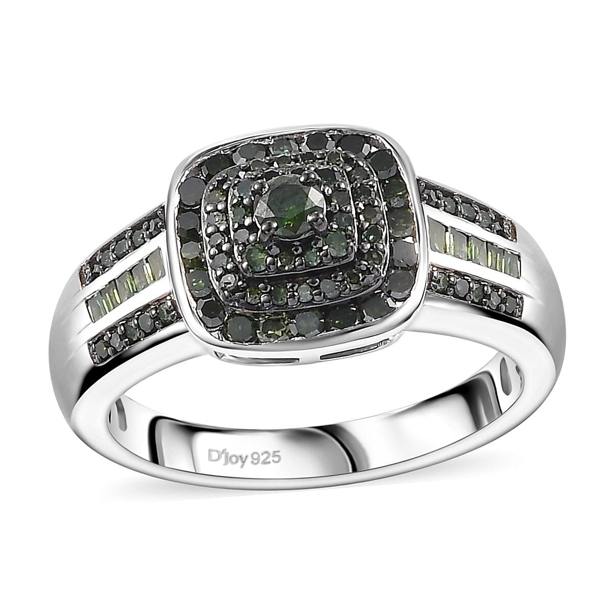 D'Joy Green Diamond 0.50 ctw Azure Halo Ring in Rhodium Over Sterling Silver (Size 7.0)