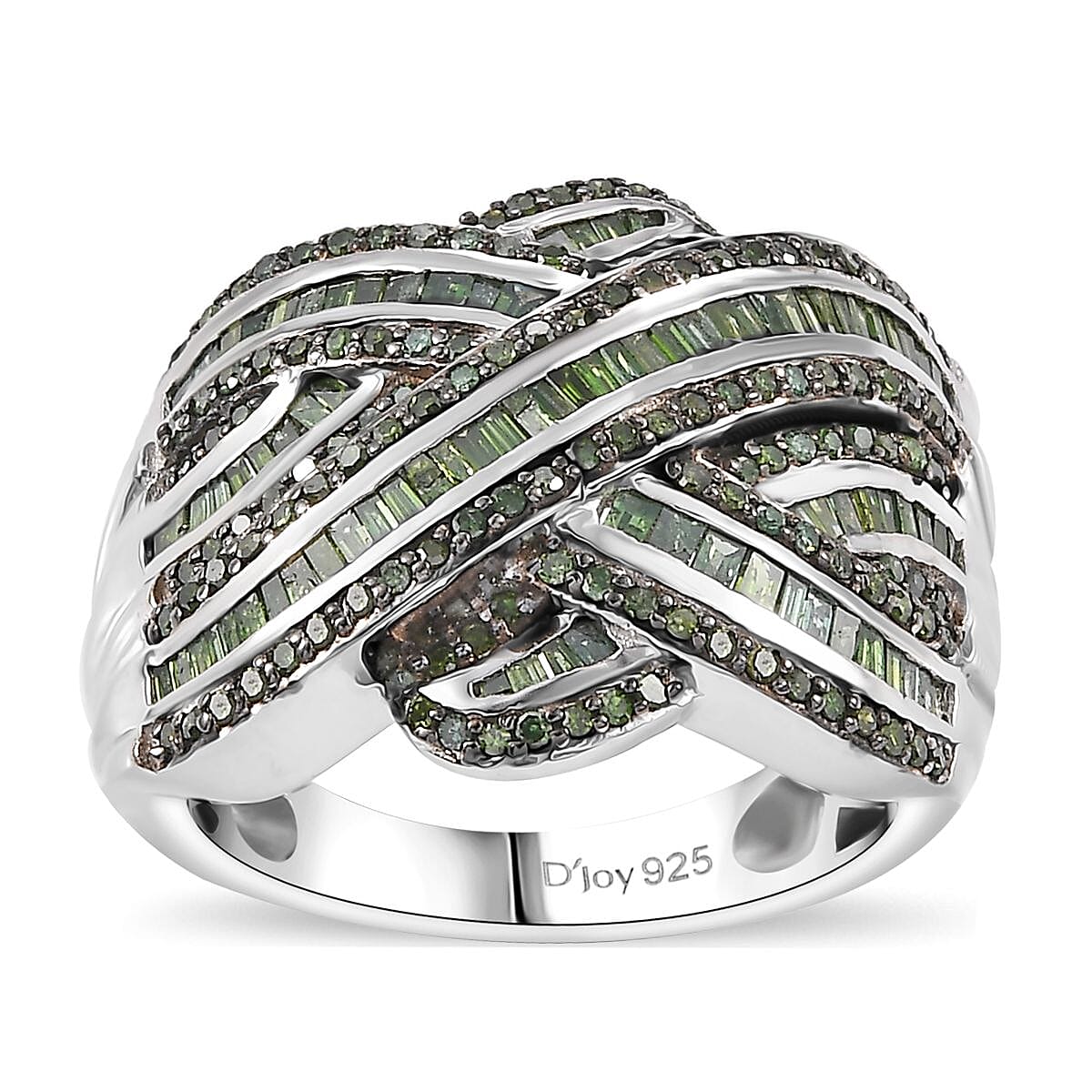 D'Joy Green Diamond 1.50 ctw Criss Cross Ring in Rhodium Over Sterling Silver (Size 6.0)