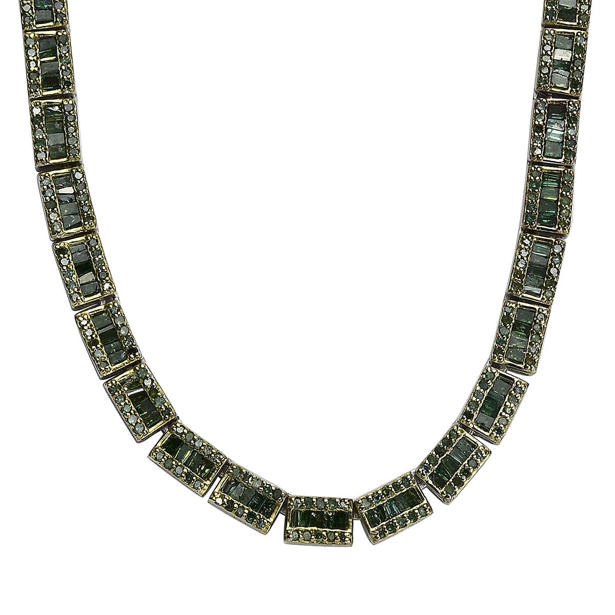 D'Joy Green Diamond Tennis Necklace, Green Diamond Three Row Necklace, Rhodium and Platinum Over Sterling Silver Necklace, 16 Inch Necklace, Diamond Jewelry For Her 4.00 ctw