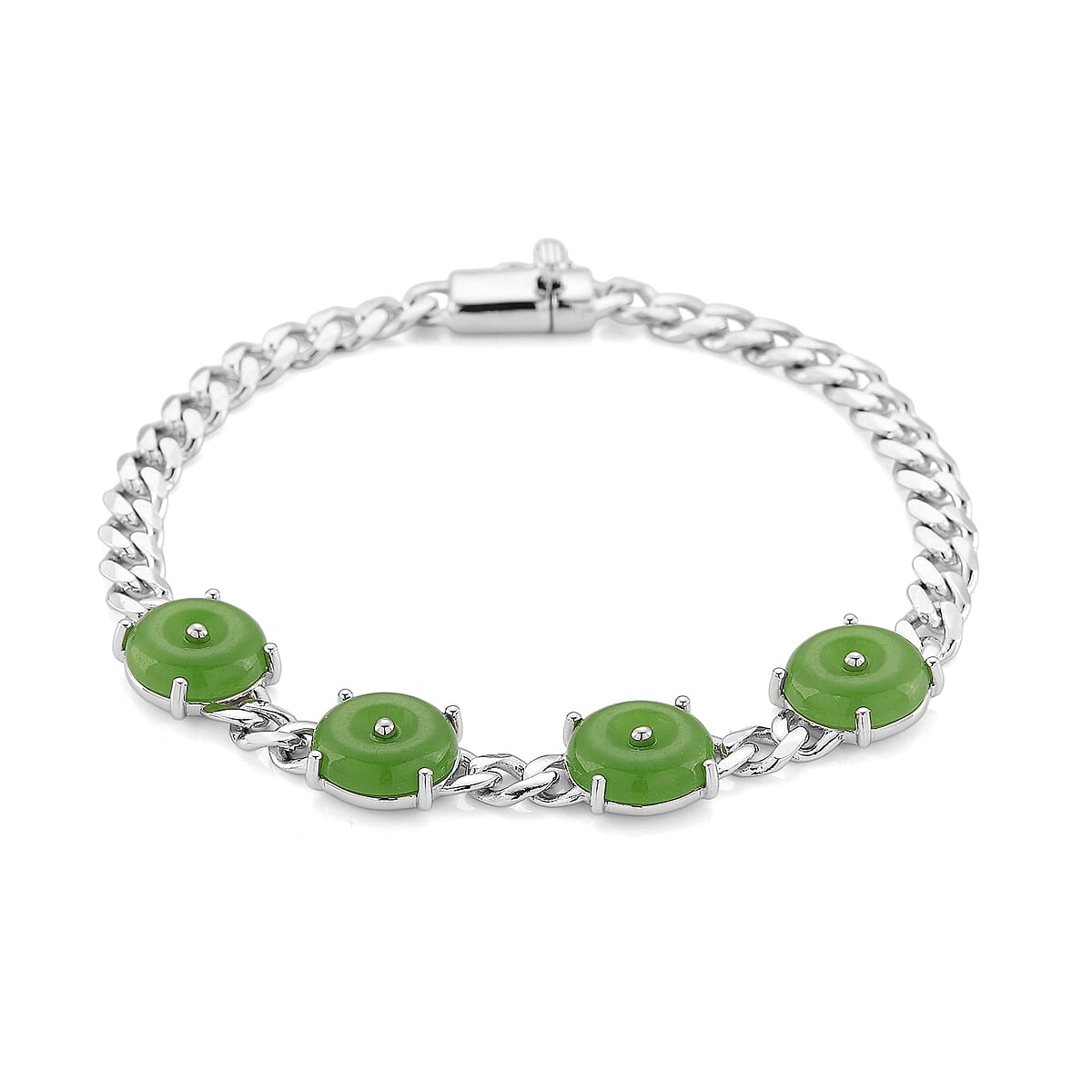 D'Joy Green Jade (D) 9.20 ctw Bracelet in Rhodium Over Sterling Silver (6.50 In)