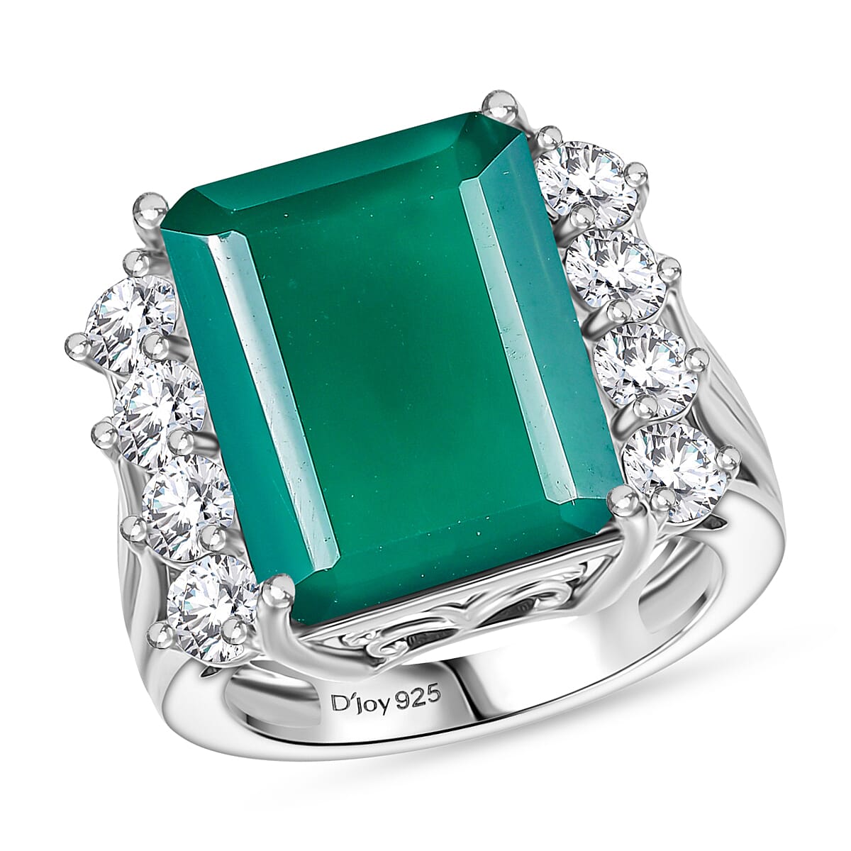 D'Joy Green Onyx and White Topaz 12.00 ctw Ring in Rhodium Over Sterling Silver (Size 8.0)