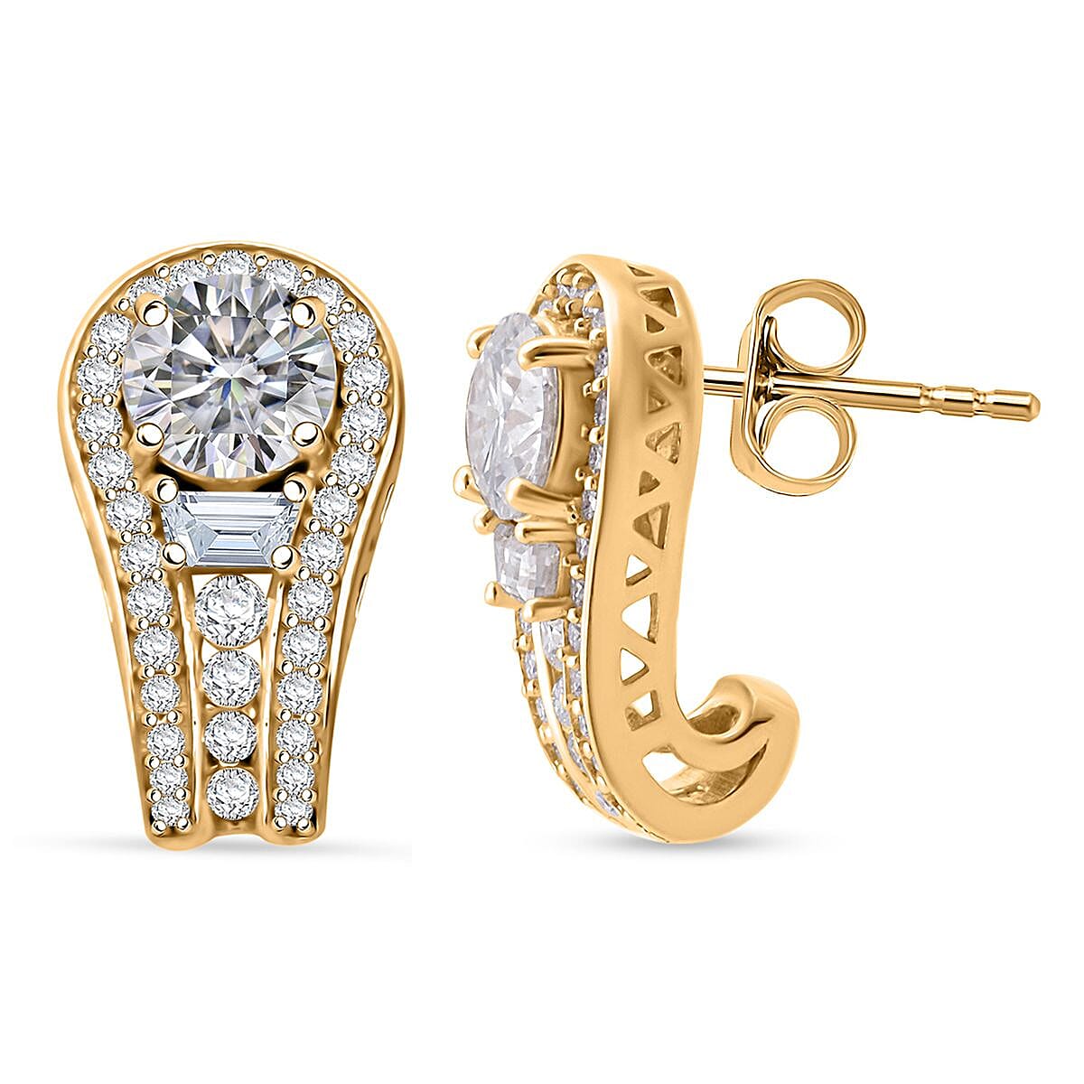 D'Joy Heart and Arrow Cut Moissanite 2.40 ctw Bridge Earrings in 18K Vermeil Yellow Gold Over Sterling Silver