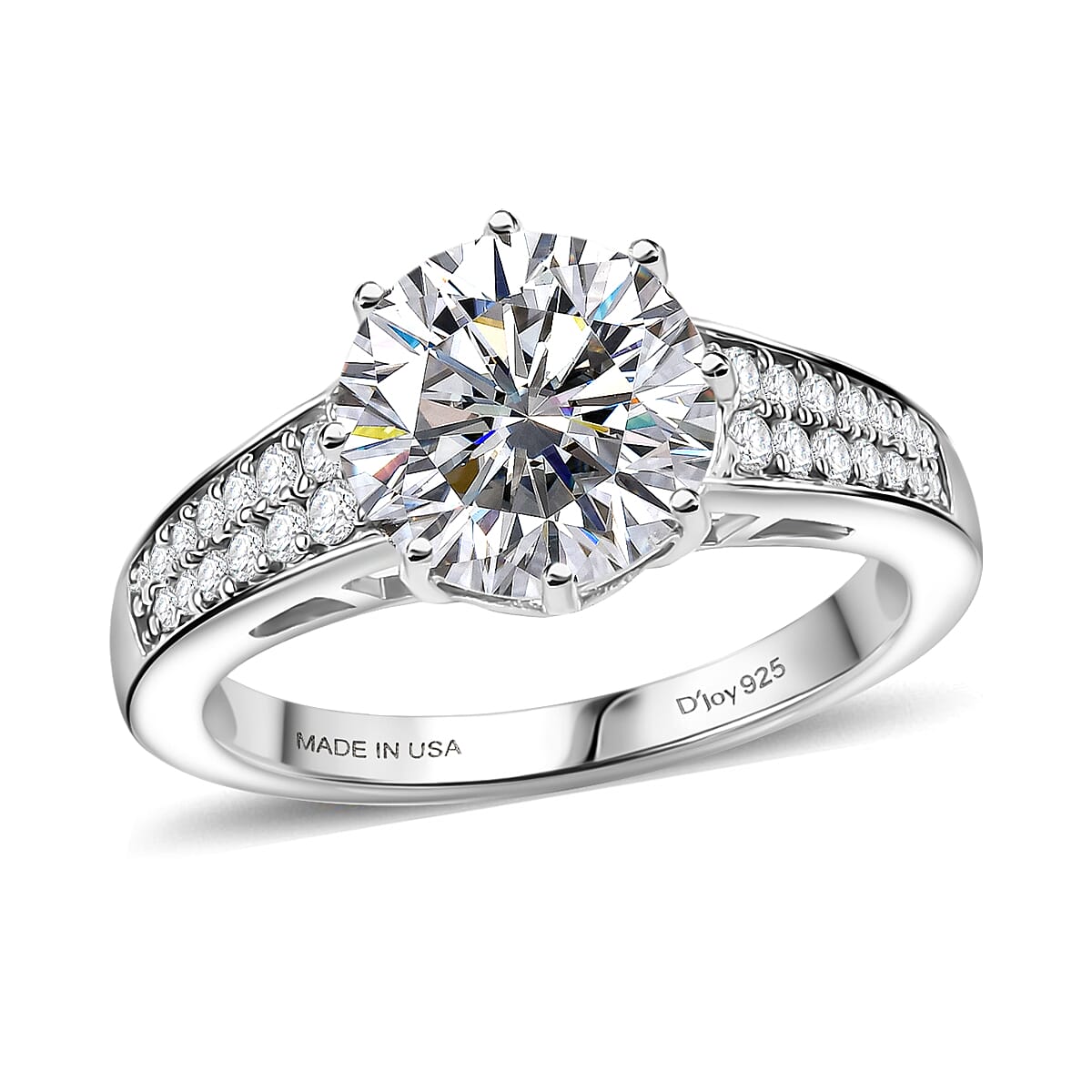 D'Joy Heart & Arrow Cut Strontium Titanate and Moissanite 4.50 ctw Classic Solitaire Ring in Rhodium Over Sterling Silver (Size 10.0)